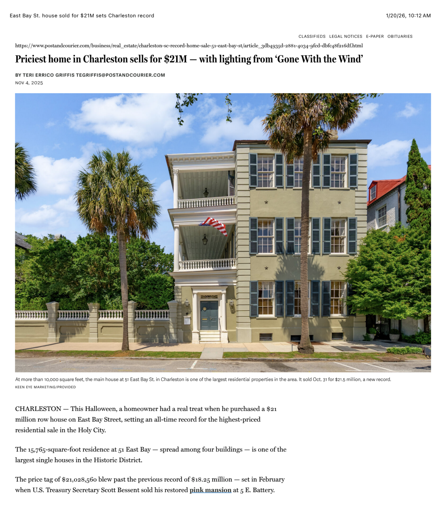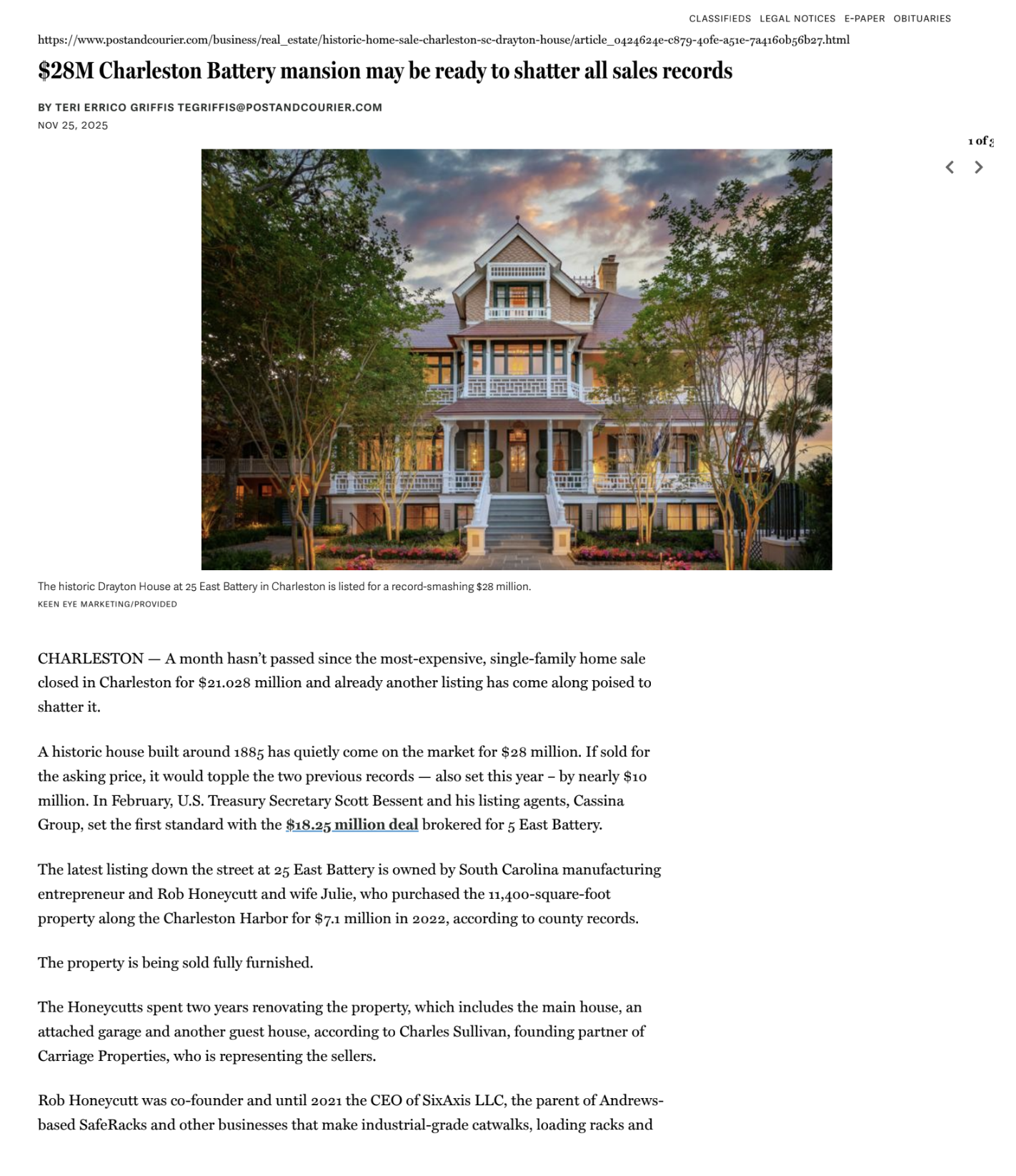Home » Press Press Real Estate News January 20 Real Estate News November 25 Market Check Real Estate News August 14 Real Estate News Feb 13 Real Estate News Jan 30 Real Estate News March 5 Real Estate News Sept 24 Real Estate News Sept 25 Dec 31 Article April Home Garden Info Architectural Digest – Carriage Properties Ad – May 2023 Carriage Properties, Sunday 2-26-2022, Home Real Estate Section Ad Charleston Heritage Symposium Charleston Magazine Chuck SOLD 2022 postcard Luxury Home Magazine Charleston South of Broad Magazine – Carriage Properties Charleston Mercury ½ page ad – April 2023 Charleston Magazine – Half Page ad – April 2023 Carriage Properties, Sunday 5-6-2023, Home _ Real Estate Section Ad Charleston Mercury ½ page ad – May 2023 Carriage Properties, Sunday 5-6-2023, Post _ Courier Web Ad Preservation Progress – Carolopolis Program – Carriage Properties – Full Page Ad – 2023